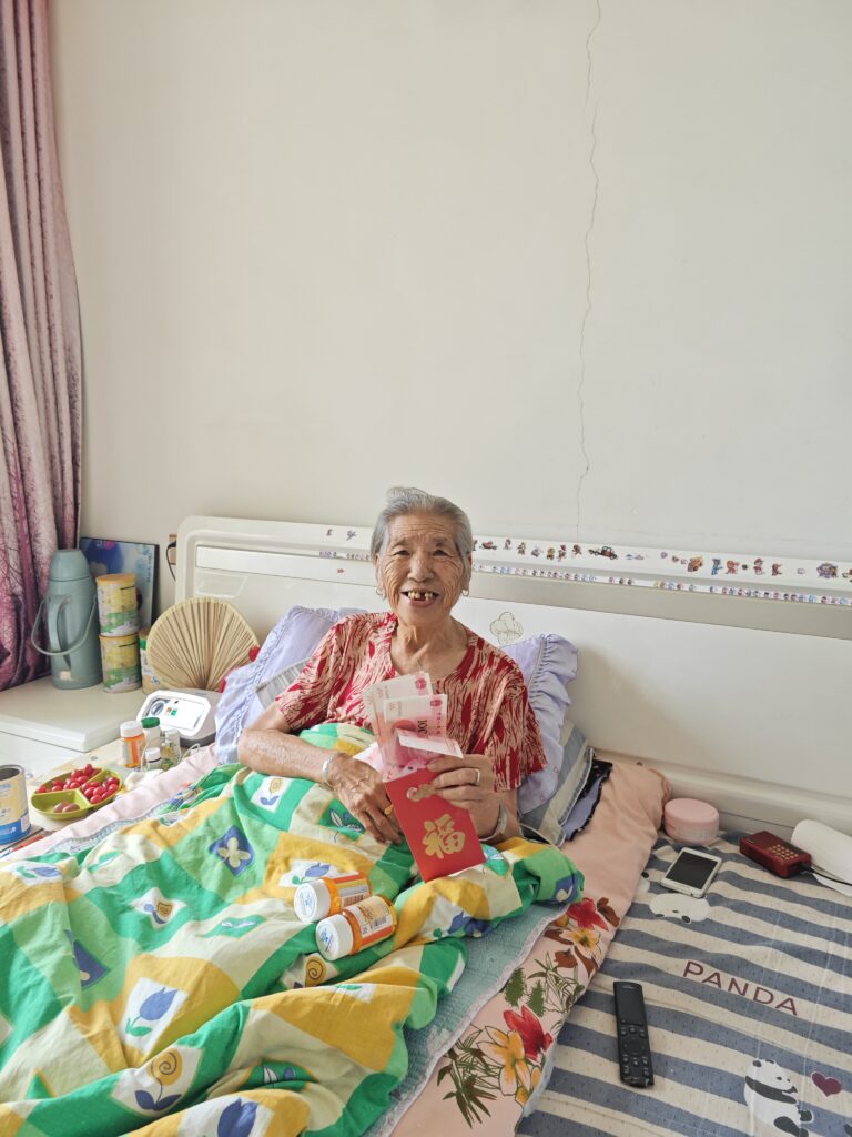 Visited ill elderly women in Jilin and Anhui and provided vitamins and support for medical treatments.